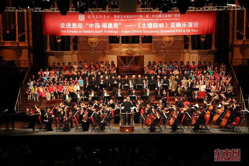 “土樓南行”——大型交響音樂會《土樓回響》澳洲巡演悉尼站演出于當(dāng)?shù)貢r間12月10日晚舉行,現(xiàn)場氣勢恢宏。