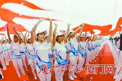 廈門(mén)日?qǐng)?bào)訊(記者 衛(wèi)琳)昨日,廈門(mén)會(huì)晤志愿者出征動(dòng)員大會(huì)在五緣灣運(yùn)動(dòng)館舉行,市委副書(shū)記陳秋雄,市委常委、組織部部長(zhǎng)陳沈陽(yáng)到場(chǎng)為2000多名整裝待發(fā)的志愿者加油、鼓勁。
