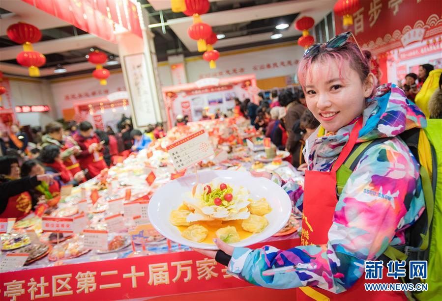 1月18日,百步亭社區(qū)居民在黨群活動(dòng)中心主會(huì)場(chǎng)的“萬家宴”上展示菜肴。 農(nóng)歷臘月二十四是南方傳統(tǒng)“小年”。當(dāng)日,湖北武漢百步亭社區(qū)舉辦傳統(tǒng)“萬家宴”活動(dòng),社區(qū)居民端出自制的一萬多道菜品,擺滿社區(qū)黨群活動(dòng)中心主會(huì)場(chǎng)和9個(gè)分會(huì)場(chǎng),4萬多個(gè)家庭歡聚一堂,吃團(tuán)圓飯、說幸福生活,喜迎新春佳節(jié)。 新華社記者 肖藝九 攝