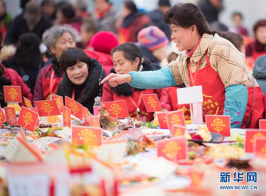 1月18日,百步亭社區居民在黨群活動中心主會場的“萬家宴”上聊天。 農歷臘月二十四是南方傳統“小年”。當日,湖北武漢百步亭社區舉辦傳統“萬家宴”活動,社區居民端出自制的一萬多道菜品,擺滿社區黨群活動中心主會場和9個分會場,4萬多個家庭歡聚一堂,吃團圓飯、說幸福生活,喜迎新春佳節。 新華社記者 肖藝九 攝