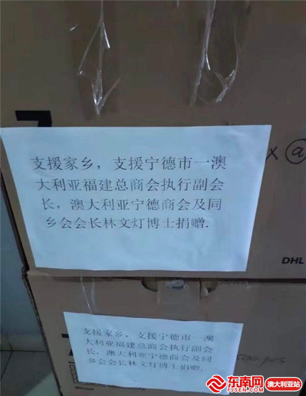澳大利亞福建總商會(huì)執(zhí)行副會(huì)長(zhǎng)、澳大利亞寧德商會(huì)會(huì)長(zhǎng)林文燈捐贈(zèng)物資。