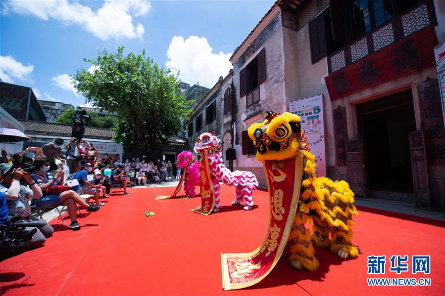 7月11日,演員在“慶祝澳門歷史城區(qū)申遺成功15周年嘉年華”上表演舞獅。新華社記者 張金加 攝