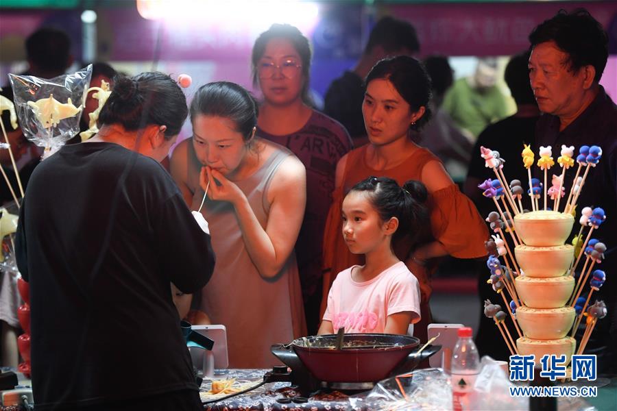 7月11日,市民在蜜桃集市上體驗(yàn)吹糖人。 當(dāng)日,浙江省寧波市奉化區(qū)在城市文化中心舉辦2020蜜桃音樂節(jié)和蜜桃集市,吸引不少市民前來休閑、消費(fèi)。 新華社記者 黃宗治 攝