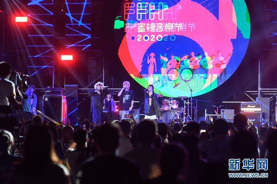 7月11日,歌手在蜜桃音樂節上演唱。 當日,浙江省寧波市奉化區在城市文化中心舉辦2020蜜桃音樂節和蜜桃集市,吸引不少市民前來休閑、消費。 新華社記者 黃宗治 攝