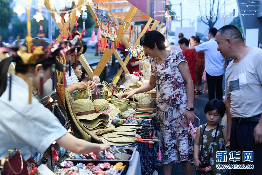 7月11日,市民在蜜桃集市上體驗吹糖人。 當日,浙江省寧波市奉化區在城市文化中心舉辦2020蜜桃音樂節和蜜桃集市,吸引不少市民前來休閑、消費。 新華社記者 黃宗治 攝