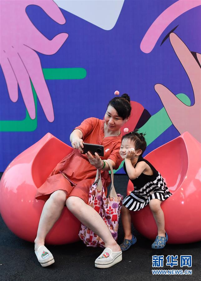7月11日,市民在蜜桃集市上自拍。 當日,浙江省寧波市奉化區在城市文化中心舉辦2020蜜桃音樂節和蜜桃集市,吸引不少市民前來休閑、消費。 新華社記者 黃宗治 攝