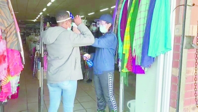 東南網(wǎng)7月14日訊 (東南網(wǎng)記者潘超)“稍等,測(cè)下體溫。”“請(qǐng)伸手,進(jìn)行酒精消毒。”……當(dāng)?shù)貢r(shí)間7月11日下午,中國(guó)留學(xué)生楊欣穎在南非東開普省埃利奧特代爾鎮(zhèn)的一家華人超市,對(duì)進(jìn)入超市的每位顧客進(jìn)行紅外線體溫測(cè)試,并提醒進(jìn)場(chǎng)顧客戴好口罩。