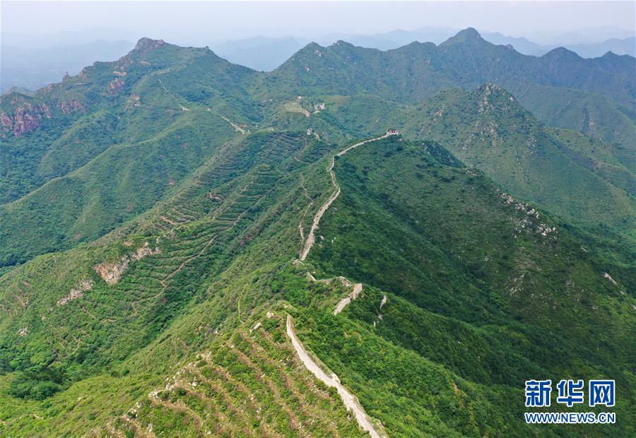 這是7月13日拍攝的河北省遷安市紅峪口長城(無人機照片)。 盛夏時節,位于河北省遷安市的紅峪口長城兩側樹木蔥郁。巍峨的長城與連綿的山嶺相映襯,風光壯美。 新華社記者 牟宇 攝