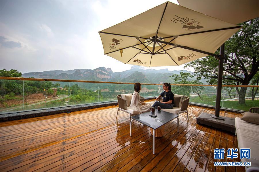 7月15日,游客在武安市活水鄉(xiāng)王坡民宿聊天。 近年來,河北省武安市活水鄉(xiāng)依托當(dāng)?shù)刈匀簧鷳B(tài)優(yōu)勢,大力發(fā)展鄉(xiāng)村旅游,利用空閑民居打造特色鄉(xiāng)村精品民宿,為農(nóng)村發(fā)展注入新活力,助力鄉(xiāng)村振興。 新華社記者 王曉 攝
