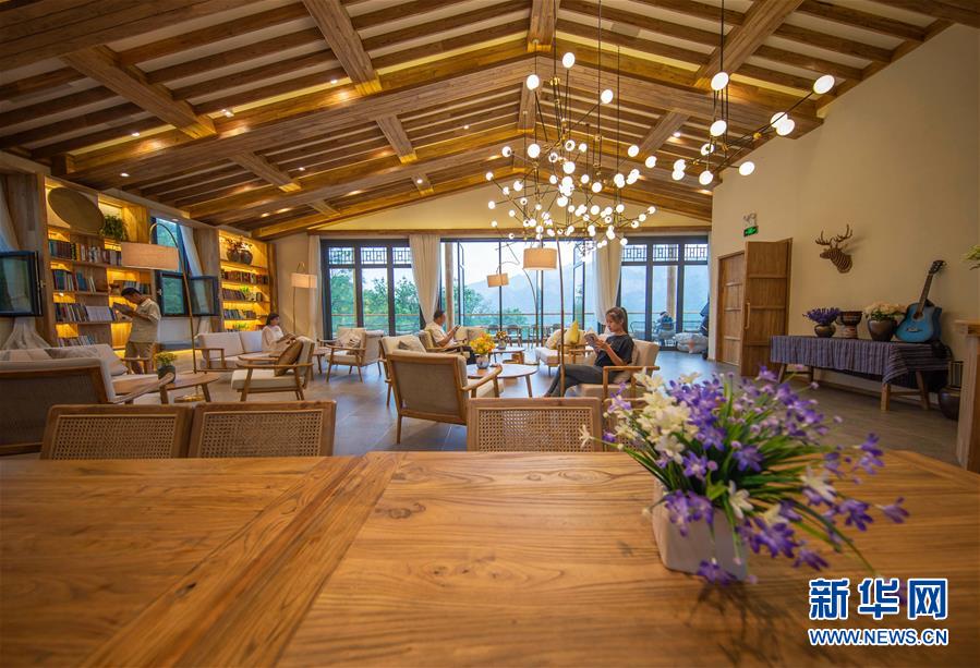 7月15日,游客在武安市活水鄉一家民宿內閱讀。 新華社記者 王曉 攝