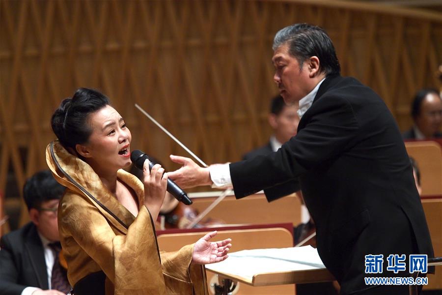 7月20日,歌唱家龔琳娜在上海夏季音樂節(jié)開幕音樂會上演唱。 當晚,為期10天的2020上海夏季音樂節(jié)開幕。開幕音樂會上,余隆執(zhí)棒上海交響樂團演繹西貝柳斯的《圖翁內(nèi)拉的天鵝》《憂郁圓舞曲》和斯特拉文斯基《火鳥》組曲,并攜手龔琳娜帶來老鑼的歌曲《靜夜思》《山鬼》。 新華社記者 任瓏 攝