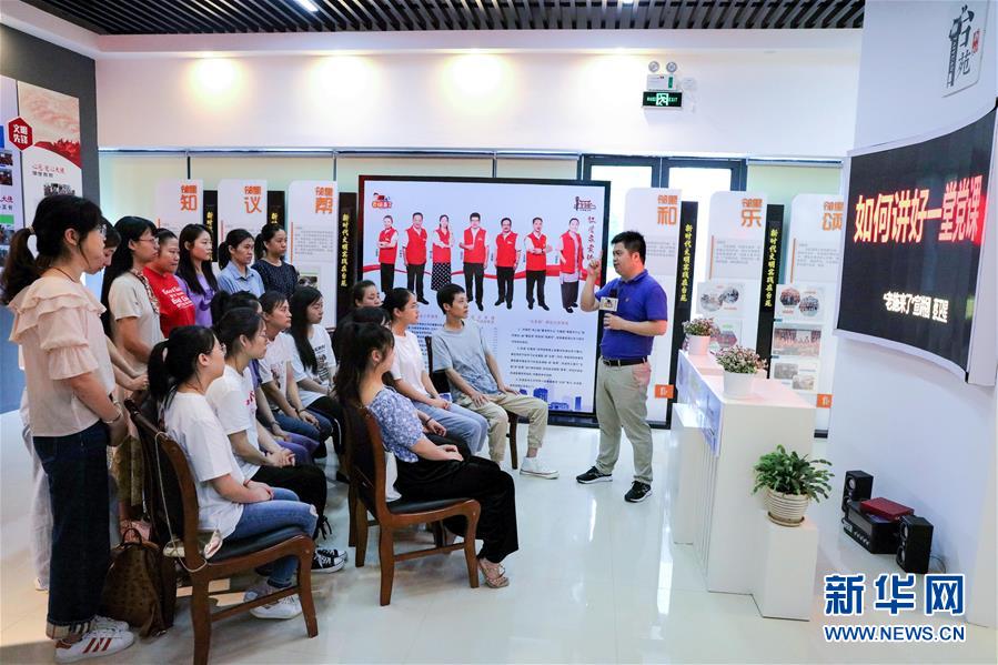 7月20日,資深宣講員(右一)給年輕的紅管家宣講員進(jìn)行宣講主題培訓(xùn)。