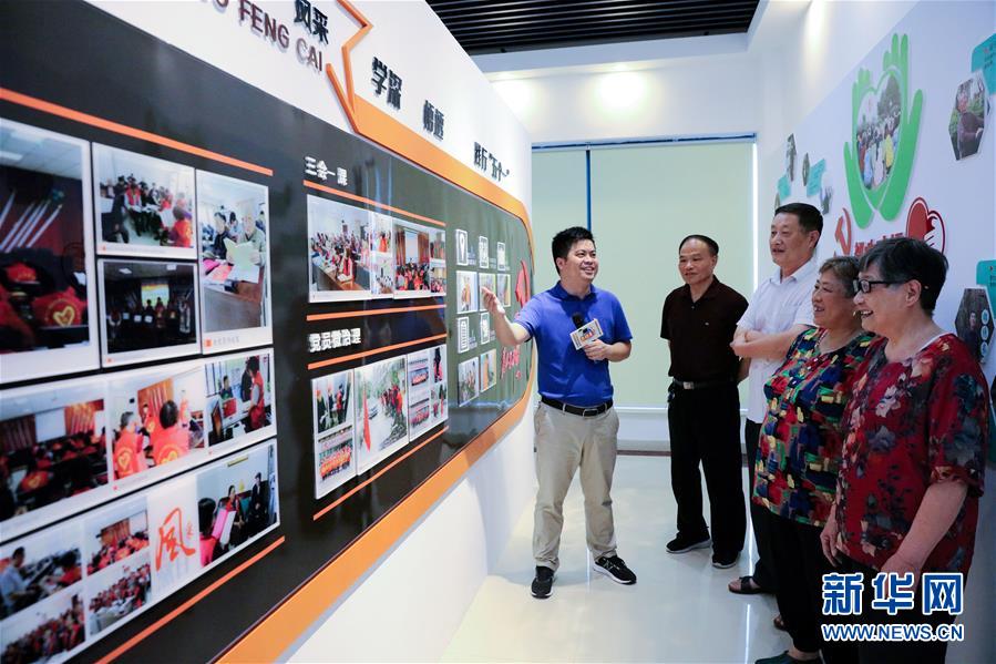 7月20日,宣講員(左一)給社區退休老黨員進行基層治理的主題宣講。新華社記者 徐昱 攝