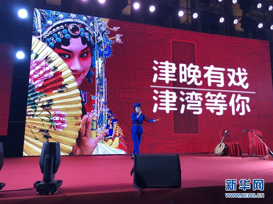 京劇愛好者在天津津灣廣場表演經典京劇唱段(7月19日手機拍攝)。新華社記者 宋瑞 攝