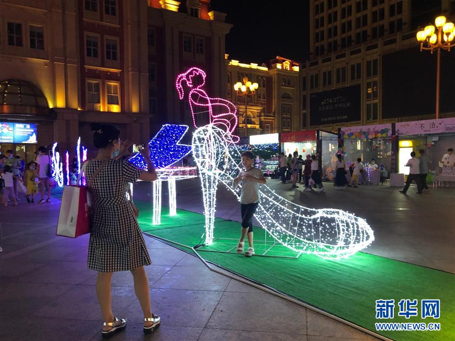游人在天津“百戲津曲”文化主題街區拍照(7月19日攝)。 新華社記者 宋瑞 攝