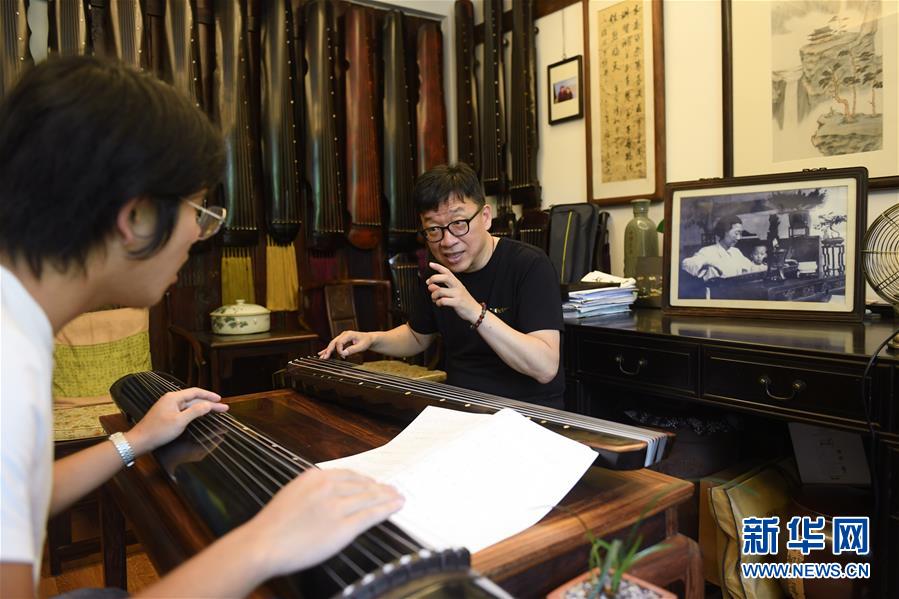 7月22日,徐君躍在浙江杭州“西湖琴社”內(nèi)給學生上琴課。新華社記者 翁忻旸 攝