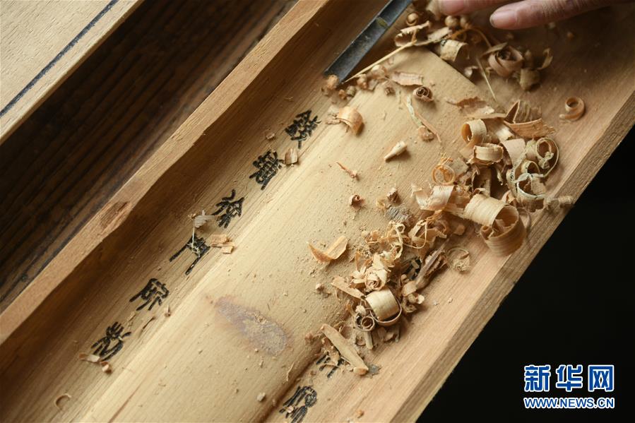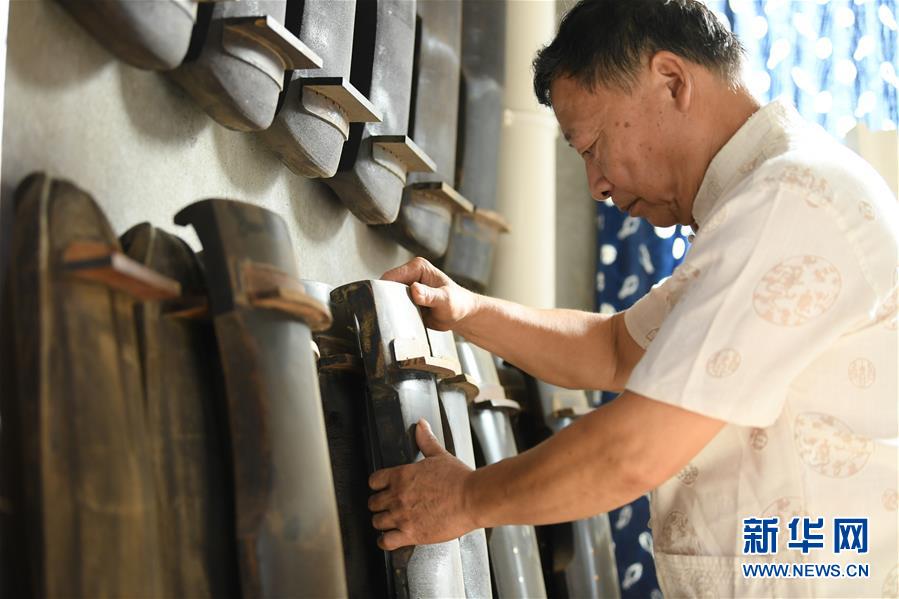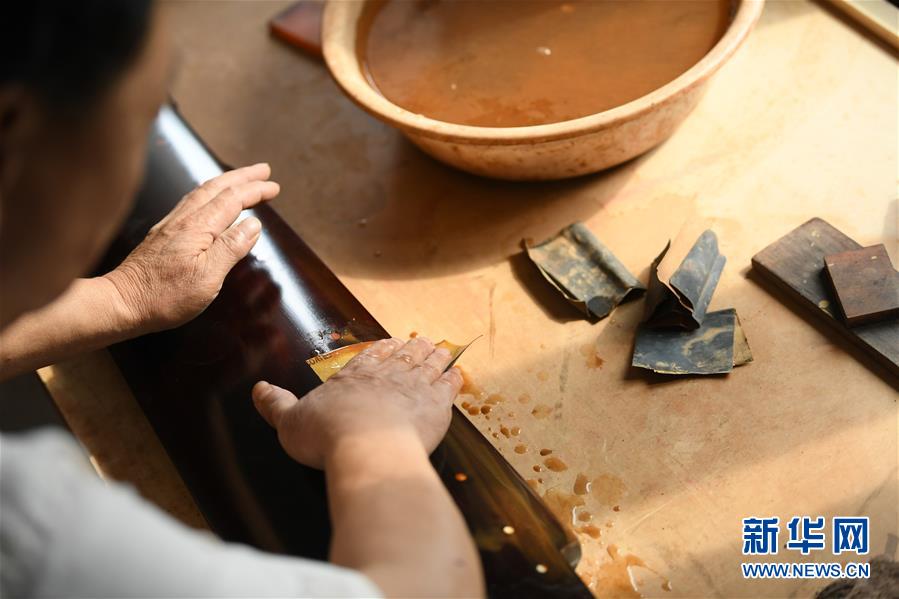 7月21日,徐君勝在浙江德清“浙派徐門琴館”打磨古琴漆面。新華社記者 翁忻旸 攝