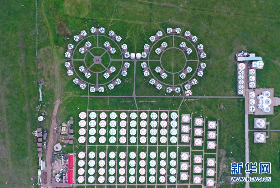 這是7月30日拍攝的輝騰錫勒(黃花溝)草原旅游區的蒙古包(無人機照片)。