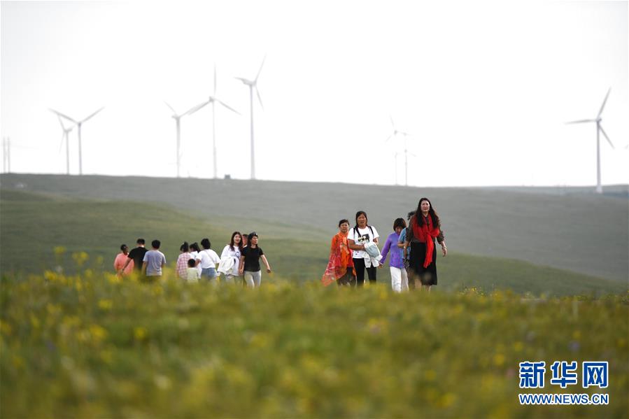 7月30日,游客在輝騰錫勒(黃花溝)草原旅游區游玩。新華社記者 劉磊 攝