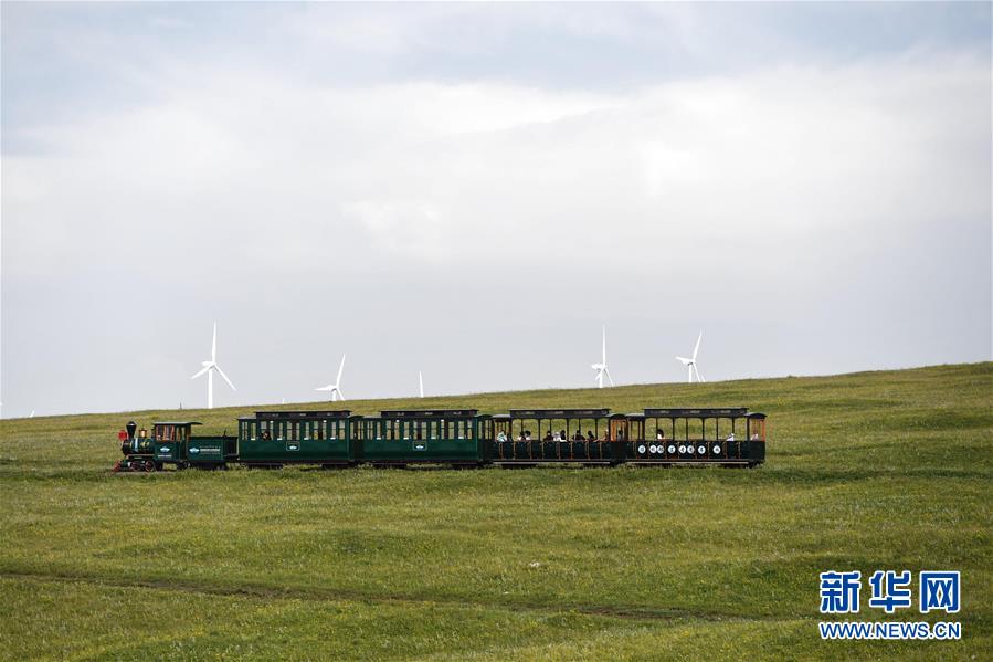 7月30日,游客在輝騰錫勒(黃花溝)草原旅游區(qū)乘坐觀光火車。新華社記者 劉磊 攝