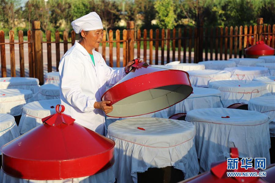 黑龍江省綏化市青岡縣蘆河鎮東升村貧困戶李淑琴在醬廠工作(7月21日攝)。