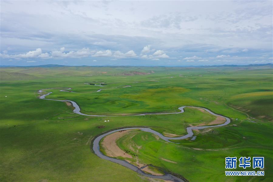這是在呼倫貝爾陳巴爾虎旗牧云山頂拍攝的莫日格勒河(8月3日攝,無人機照片)。 今年暑期,內蒙古呼倫貝爾通過暫行周末2.5天彈性休假工作制度,發放旅游、餐飲消費券,景區推出優惠促銷活動等措施,提振當地旅游市場。 新華社記者 徐欽 攝