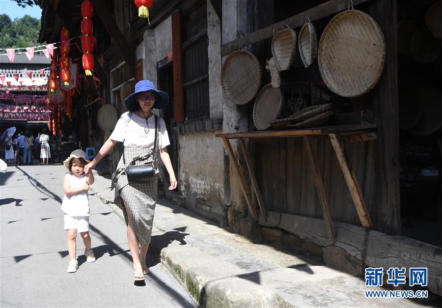 8月5日,游客在豐盛古鎮游覽。 近年來,重慶市巴南區引入社會資本,按照“修舊如舊、適度開發”的原則對豐盛古鎮進行保護性修繕和景區化打造,讓古鎮在保留原有歷史人文風貌的同時,煥發新活力。 新華社記者 王全超 攝