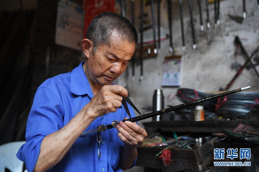 8月5日,豐盛古鎮經營秤桿店的居民王澤喜在制作秤桿。 近年來,重慶市巴南區引入社會資本,按照“修舊如舊、適度開發”的原則對豐盛古鎮進行保護性修繕和景區化打造,讓古鎮在保留原有歷史人文風貌的同時,煥發新活力。 新華社記者 王全超 攝