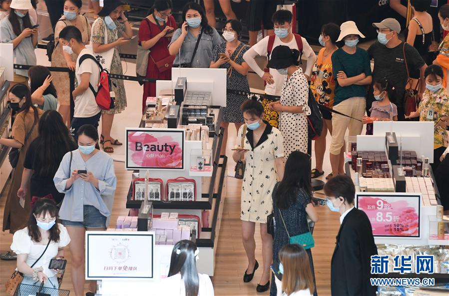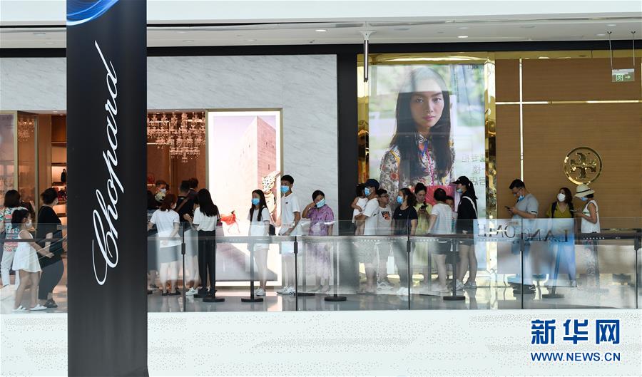 8月6日,游客在三亞國(guó)際免稅城排隊(duì)進(jìn)店。新華社記者 楊冠宇 攝