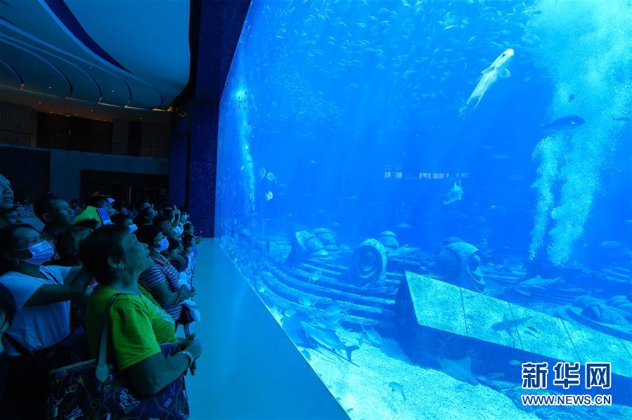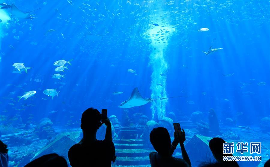 8月6日,游客在三亞亞特蘭蒂斯酒店內(nèi)的水族館游玩。新華社記者 楊冠宇 攝