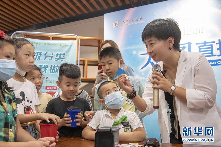 8月7日,工作人員在太原市圖書館內為小朋友們講解垃圾分類常識。