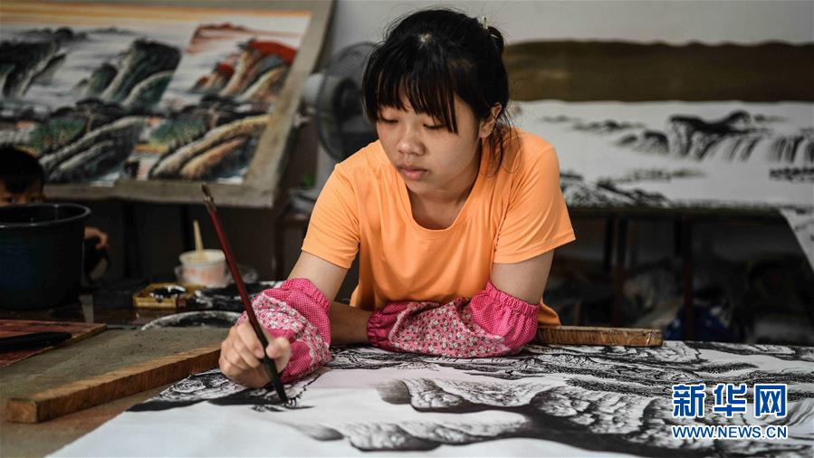8月6日,在桂林市臨桂區五通鎮,一名畫師在自己的工作室里創作。 近年來,廣西桂林市臨桂區五通鎮以“公司+貧困戶+畫師”的模式,大力推動“農民畫”產業發展。目前,五通鎮“農民畫”從業者已達5000多人,“農民畫”已成為當地農民增收的新產業。 新華社記者 張愛林 攝