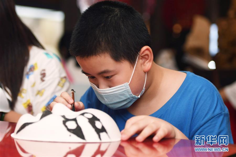 8月8日,小朋友在長沙市非物質(zhì)文化遺產(chǎn)展示館體驗湘劇臉譜繪制。 暑假期間,許多小朋友來到位于湖南省長沙市橘子洲景區(qū)的長沙市非物質(zhì)文化遺產(chǎn)展示館參觀體驗。 新華社記者薛宇舸攝