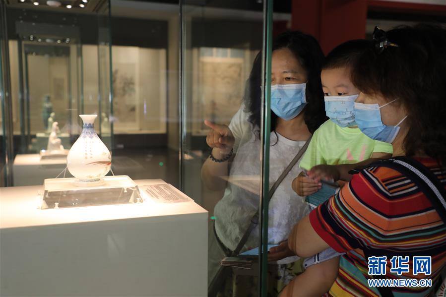 觀眾在天津博物館觀賞琺瑯彩玉壺春瓶(6月23日攝)。新華社記者 周潤健 攝