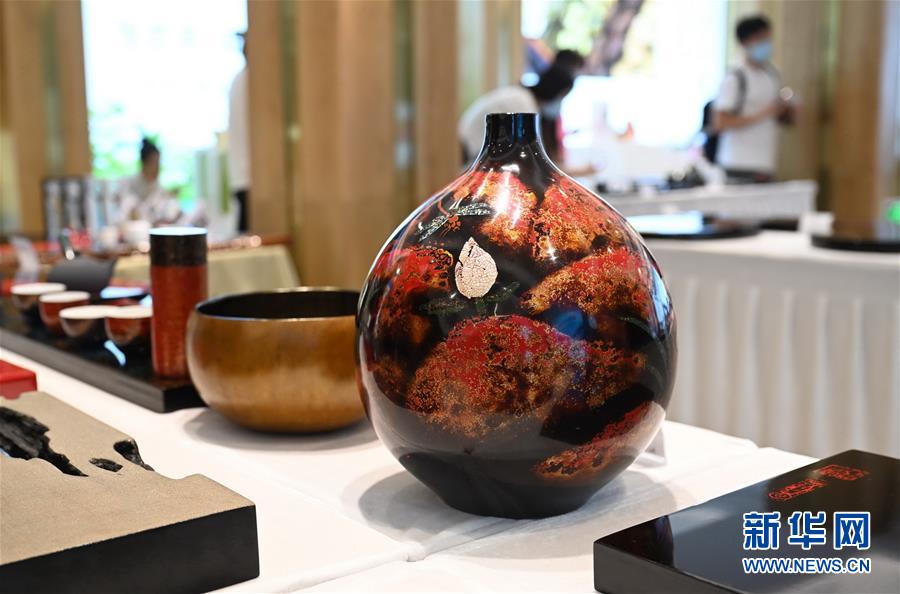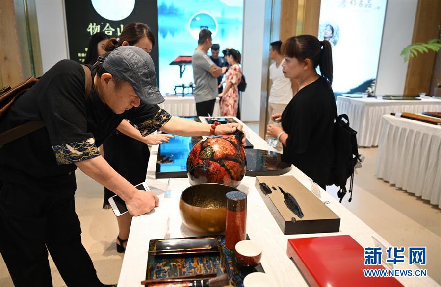 8月15日,觀眾在福州市首屆大漆茶器展現(xiàn)場參觀。 新華社記者林善傳攝
