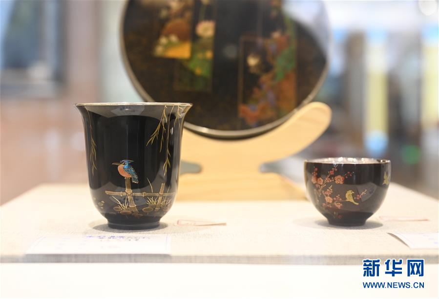 這是現(xiàn)場展出的銀胎花鳥大漆茶器(8月15日攝)。 新華社記者林善傳攝
