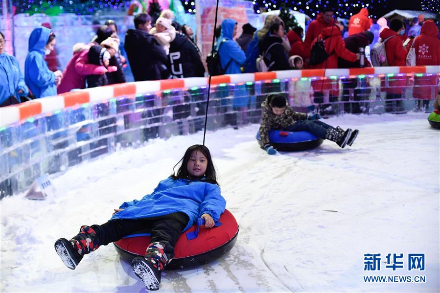 8月16日,小朋友在梅山灣冰雪大世界主題樂園里體驗。 近日,浙江遭遇連續(xù)高溫天氣,不少游客來到寧波市北侖區(qū)梅山灣冰雪大世界主題樂園休閑避暑。 新華社記者 黃宗治 攝