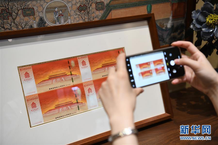 8月18日,記者在發(fā)布會上拍攝“紫禁城建成600年紀(jì)念券”。新華社記者 金良快 攝