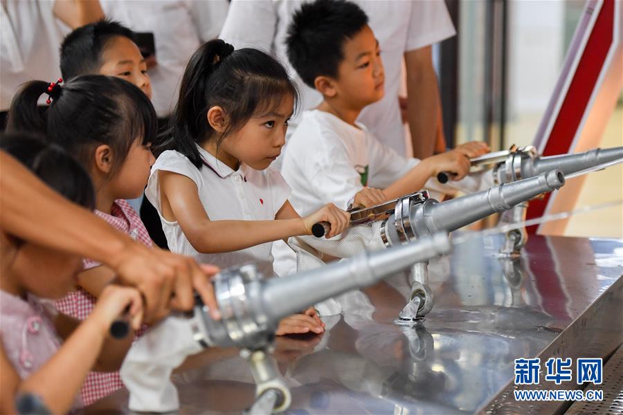 8月18日,在長沙市長沙縣星沙街道消防安全科普教育館,小朋友在體驗模擬滅火。 暑假期間,湖南省長沙市長沙縣星沙街道松雅社區組織小朋友參加消防安全科普教育活動,通過體驗VR火場逃生、高空緩降、模擬滅火等方式學習消防安全知識,提高安全意識和避險能力。 新華社記者 陳澤國 攝