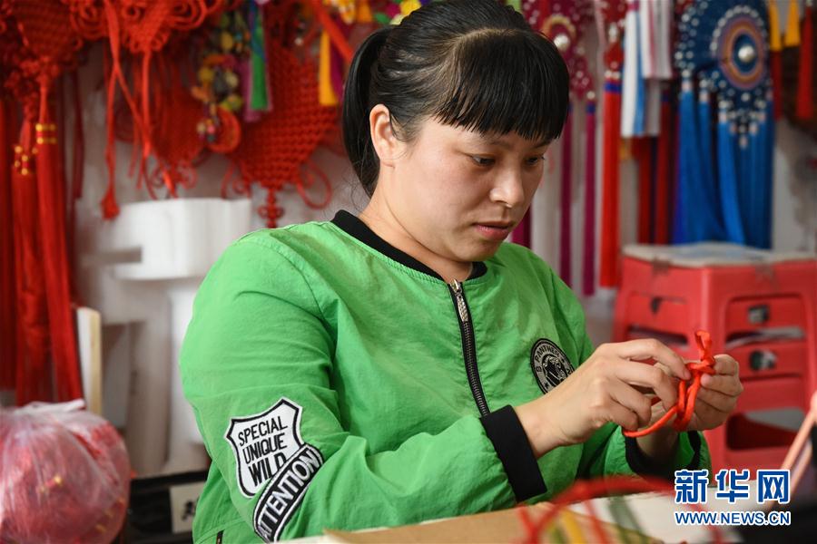 8月12日,學(xué)員在黑龍江省伊春市南岔縣婦女創(chuàng)業(yè)孵化基地編織中國(guó)結(jié)。 新華社記者楊喆攝