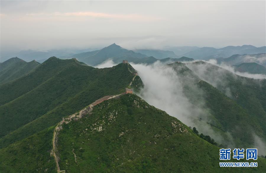 8月18日拍攝的河北省遷安市楊各莊鎮徐流口村段的長城景色(無人機照片)。 當日,一場降雨過后,遷安市徐流口村段的長城云霧繚繞,景色如畫。 新華社記者 李繼偉 攝