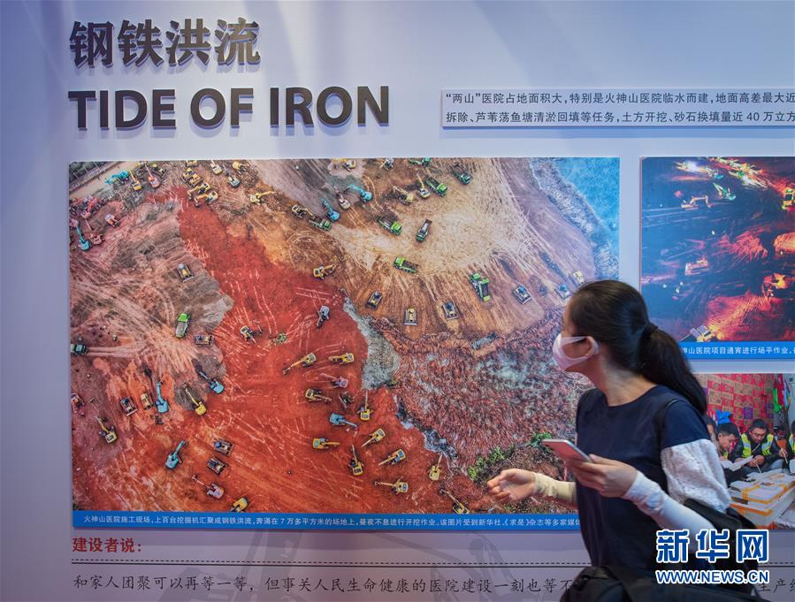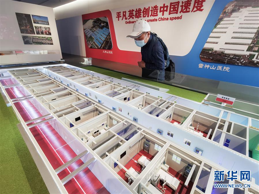 8月19日,參觀者在中國建筑科技館內觀看火神山、雷神山醫院建設紀實展覽。 新華社記者 肖藝九 攝