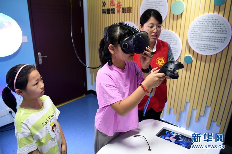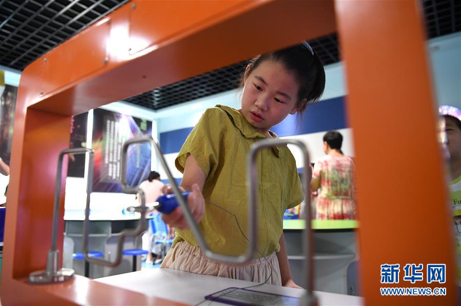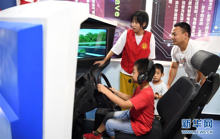 8月22日,小朋友在派河社區科普館內體驗科普設施。新華社記者 劉軍喜 攝