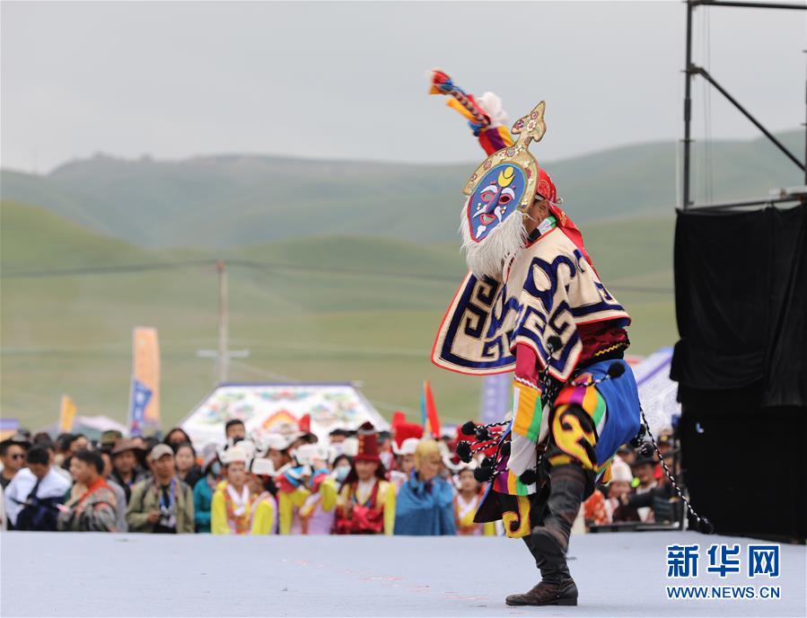 8月22日,演員在舞臺上表演南木特藏戲。 當日,2020年九色甘南香巴拉夏河第三屆拉卜楞香浪節在甘肅省夏河縣賽欽草原上舉行。香浪節是甘南地區藏族群眾最重要的民俗節日之一,流傳至今已有數百年歷史。節日中藏族群眾歡聚在草原上,跳鍋莊、唱民歌、享美食,向人們展現傳統民族文化的無限魅力。 新華社記者 張智敏 攝