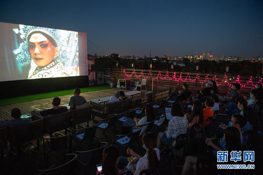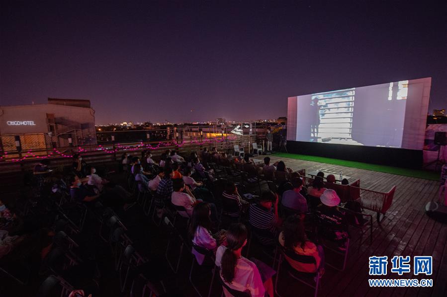 8月24日,觀眾在南鑼書店露臺欣賞露天電影。 當日,第十屆北京國際電影節在位于北京市東城區的南鑼書店露臺舉辦露天放映活動。 新華社記者 陳鐘昊 攝