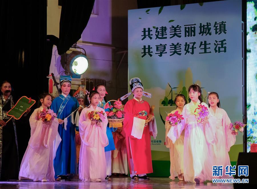 8月25日,演員們在山口鎮文化禮堂為村民表演。 當日,浙江省青田縣山口鎮舉辦一場以“共建美麗城鎮 共享美麗環境”為主題的特色文化匯演。文化匯演用舞蹈、快板、小品、三句半等群眾喜聞樂見的形式,開展宣傳活動,為美麗城鎮建設營造良好氛圍,推進青田縣的美麗城鎮建設。 新華社記者 徐昱 攝