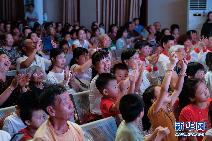 8月25日,村民們在山口鎮文化禮堂觀看特色文化匯演。 當日,浙江省青田縣山口鎮舉辦一場以“共建美麗城鎮 共享美麗環境”為主題的特色文化匯演。文化匯演用舞蹈、快板、小品、三句半等群眾喜聞樂見的形式,開展宣傳活動,為美麗城鎮建設營造良好氛圍,推進青田縣的美麗城鎮建設。 新華社記者 徐昱 攝