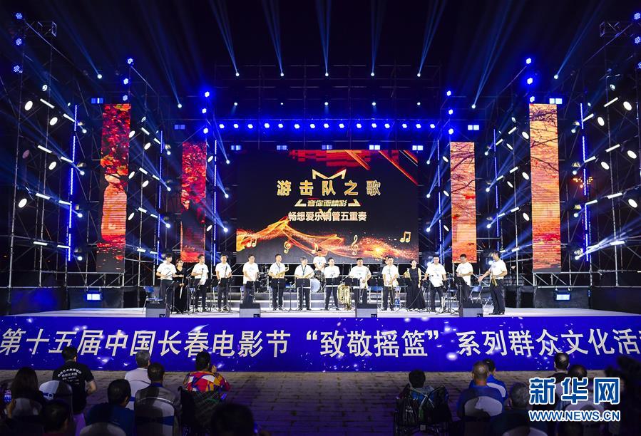 8月31日,在長春市文化廣場舉行的電影主題廣場音樂會上,樂團演奏《游擊隊之歌》。 當(dāng)日,作為第十五屆中國長春電影節(jié)“致敬搖籃”系列群眾文化活動之一的電影主題廣場音樂會在長春市文化廣場上演,樂團現(xiàn)場演奏了多首膾炙人口的經(jīng)典電影插曲和配樂,為觀眾獻(xiàn)上一場視聽盛宴。 新華社記者 許暢 攝