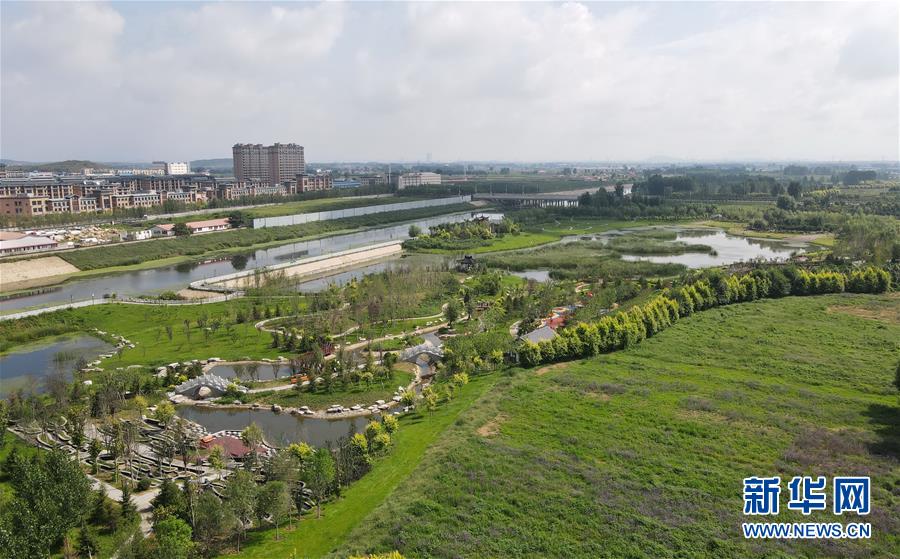 8月31日拍攝的秦皇島市撫寧區洋河濕地公園景色(無人機照片)。 近年來,河北省秦皇島市撫寧區在實施生態優先戰略過程中,持續推進流經城區的洋河及周邊環境的生態治理,使受損生態系統得到有效修復。目前,該區域已形成集人工湖、木棧道、親水平臺等于一體的洋河濕地公園景觀廊道。 新華社記者 楊世堯 攝