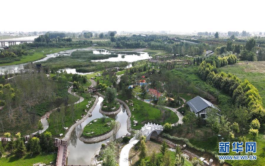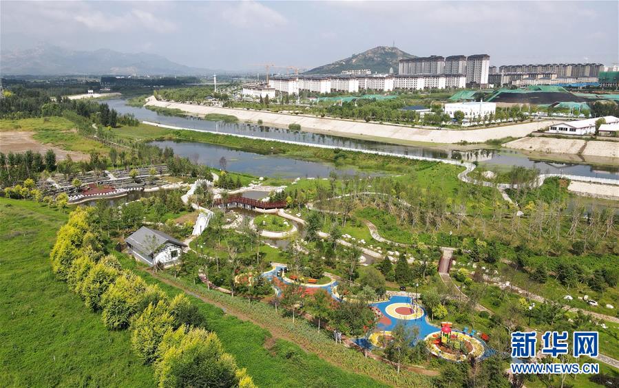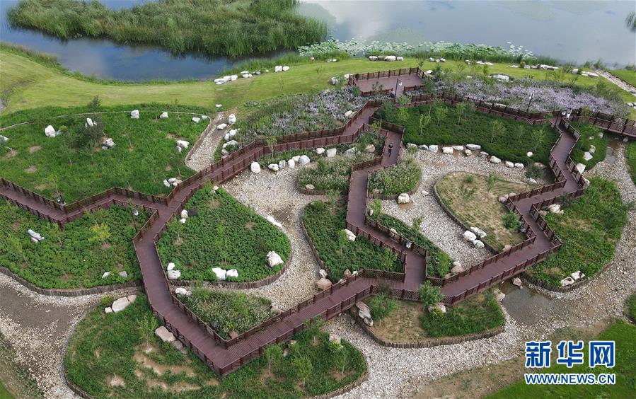 8月31日拍攝的秦皇島市撫寧區洋河濕地公園景色(無人機照片)。 近年來,河北省秦皇島市撫寧區在實施生態優先戰略過程中,持續推進流經城區的洋河及周邊環境的生態治理,使受損生態系統得到有效修復。目前,該區域已形成集人工湖、木棧道、親水平臺等于一體的洋河濕地公園景觀廊道。 新華社記者 楊世堯 攝